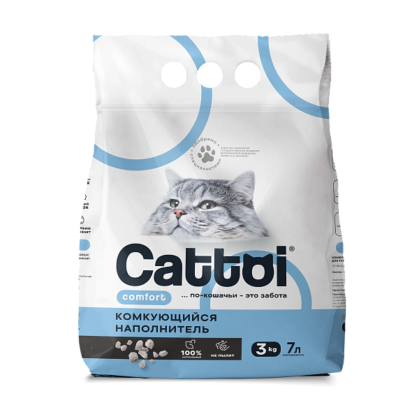 Түйіршіктердің оңтайлы мөлшері толтырғышты үнемді жұмсауға мүмкіндік беретін тегіс жәнеактам кесектерді алуға мүмкіндік береді.Түйіршіктер Cattoi® Comfort, жоғары сіңіргіш қасиеттерге ие және бактериялардың пайда болуына жол бермейді. Бірегей технология ылғалды қысқа мерзімде сіңіріп, жағымсыз иістерді бөгейтін кесек түзуге мүмкіндік береді. Алынған кесектер үйде балғындық пен тазалаудың ыңғайлылығын қамтамасыз етеді. Елдің жетекші ветеринарлық университеттерінің бірі Cattoi® Comfort өнімінің бүкіл отбасы үшін қауіпсіздігін жоғары бағалады және оны қолдануға кеңес берді.